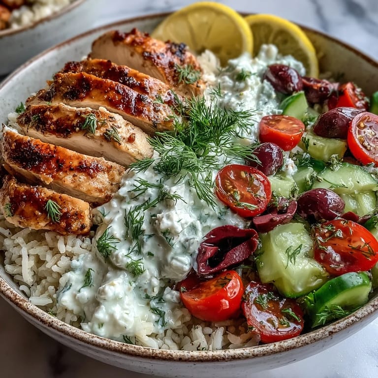 Save There's something about assembling a Greek bowl that feels less like cooking and more like building a small, edible landscape. I discovered this particular combination on a sweltering afternoon when my fridge held scattered ingredients and my appetite demanded something bright and alive. The first time I layered that warm herbed rice with cold salad and silky tzatziki, I understood why Greeks have been eating variations of this for centuries—it's not fussy, it's not complicated, but somehow every element knows exactly what it's doing.