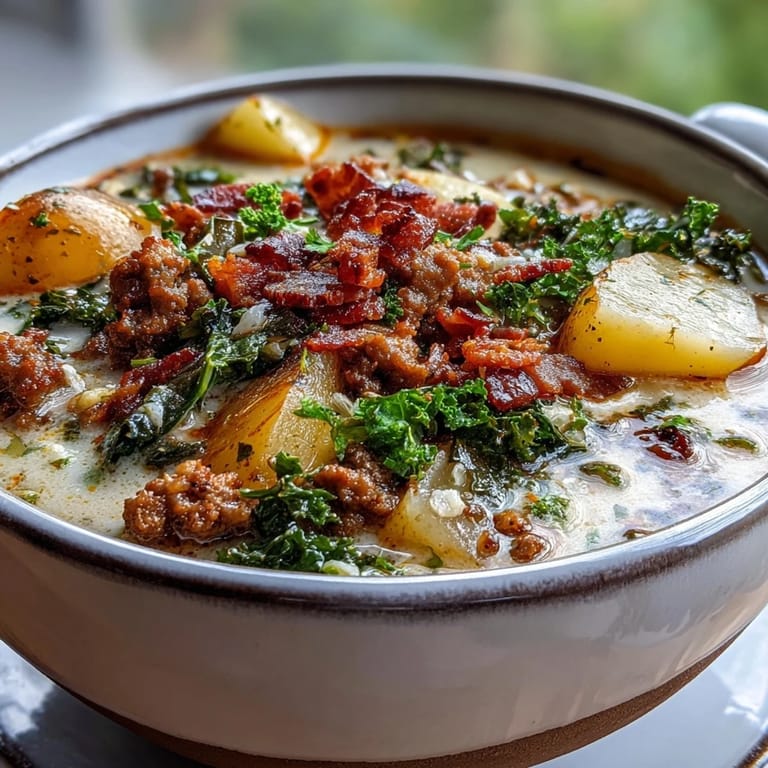 Save My coworker Sarah brought a thermos of this soup to the office on a freezing February afternoon, and the entire break room smelled like bacon and garlic within seconds. I watched her ladle it into bowls with this quiet confidence, and when I tasted it, I understood why she'd made a double batch. There's something about the way the creamy broth clings to tender potatoes and the kale adds this unexpected earthiness that makes you want another spoonful before you've even finished the first. She promised it took less than an hour, so I went home determined to recreate it that same week.