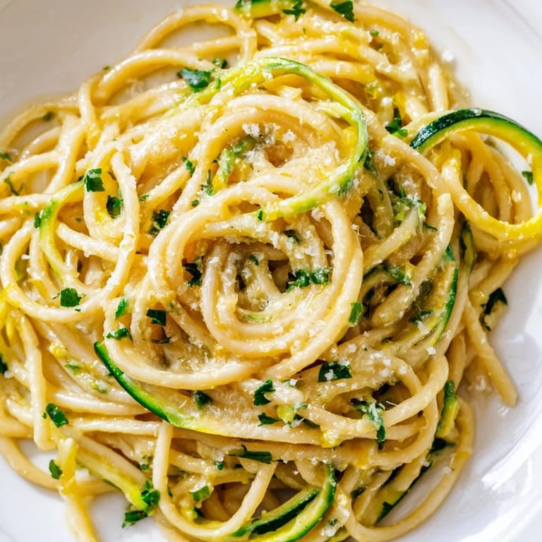 Save My neighbor Rosa handed me three enormous zucchinis over the fence one July morning, laughing about her garden's overachievement. I had pasta in the cupboard, a lemon on the counter, and no plan for dinner. What started as improvisation turned into something I crave on repeat: bright, buttery, and impossibly simple. The zucchini ribbons soften just enough to tangle with the spaghetti, and the lemon cuts through the richness in a way that feels almost medicinal after a long day.