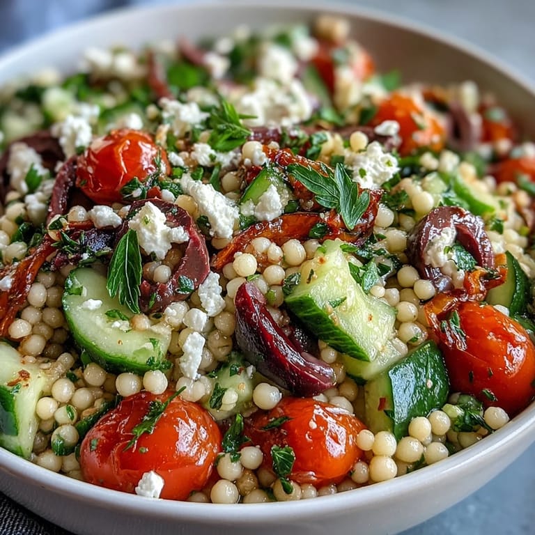 I brought this to a potluck once and someone asked if I'd been to Greece recently. I hadn't, but the combination of salty feta, crunchy cucumber, and those chewy little pearls of couscous somehow captured that feeling anyway. It disappeared faster than anything else on the table. I've made it a dozen times since, tweaking it slightly each time, and it never gets old.
