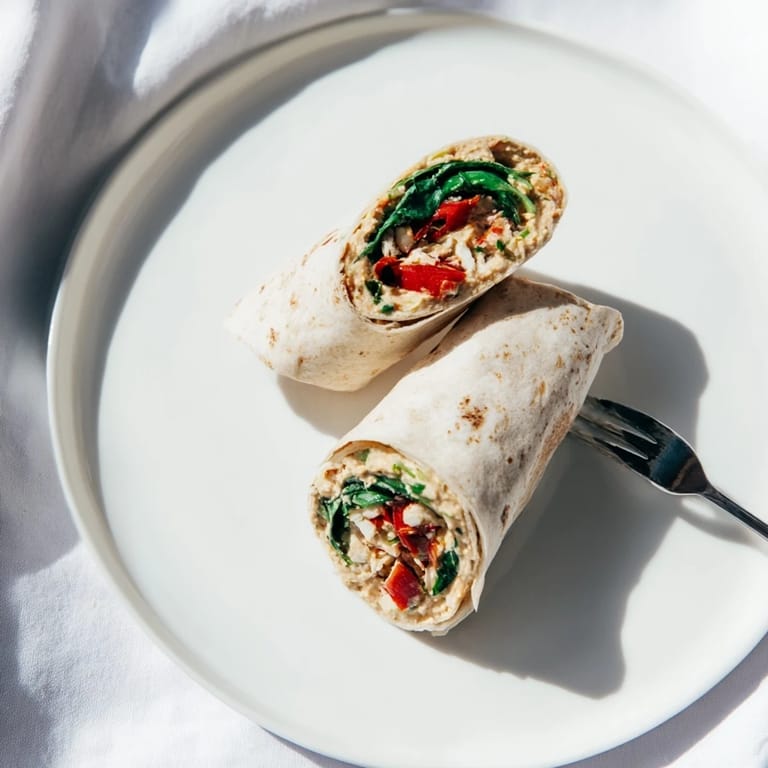 Save I threw this wrap together on a Tuesday afternoon when the fridge was nearly empty and I was too tired to think. I had hummus leftover from the weekend, some wilted spinach I needed to use, and a jar of roasted red peppers I'd been ignoring for weeks. What started as a lazy meal became one of those recipes I now crave constantly. The balance of creamy, tangy, and fresh is so satisfying that I stopped ordering takeout wraps entirely.